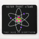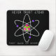 Nunca confie átomos - compo tudo. Mousepad engraçado para qualquer um que gosta da ciência e as piadas e as chalaças da ciência. Protão, nêutrons e elétrons coloridos em um fundo preto.