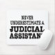 Legal design com a citação "Nunca subestime um assistente judicial". Perfeito para assistente judicial, funcionários, juízes, advogados, advogados, conselheiros.