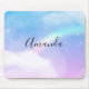 Um mouse pad com uma imagem de fundo suave e adorável. Azul pastel e nuvens cor-de-rosa com um arco-íris mágico.