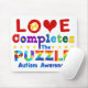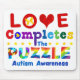 Citando o Autismo Inspiracional, O Amor Completa O Quebra-cabeça, com quebra-cabeça Autismo coloridos e uma bela borboleta para apoiar as crianças autistas e suas famílias.
