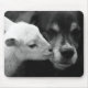 Um cordeiro doce nuzzles até o focinho do cão velho. Demasiado bonito. Faz um presente perfeito para o amante dos animais.