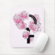 Esta design apresenta o símbolo do sexo feminino coberto por flores cor-de-rosa.
