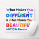 Citação inspiradora de "O que faz você diferente é o que o torna bonito" com quebra-cabeça autistas únicos e bonitos, e flores para apoiar e defender a consciência do autismo.