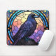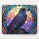 Apresentado em vidro colorido, um raspão assustador e assustador vira seu olhar no espectador.