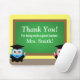 Expresse seus obrigados a seu professor para ser um professor tão grande durante seus anos escolares e ofereça-lhes o adeus como você se gradua da escola com este mousepad bonito e doce. As características de design um pares de corujas pequenas bonitos, azul e cor-de-rosa, na graduação equipam e chapéus com giz em suas asas. O texto no quadro verde lê o "obrigado você! Para ser um professor tão grande". Personalize com sua mensagem para o professor.