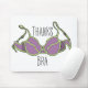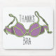 Um sutiã verde limão roxo e chave, com o texto dizendo, "Obrigados Bra."
