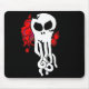 Um crânio com tentáculos de polvo e uma design de espiral vermelha.