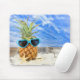 abacaxi na areia com óculos de sol cardíacos e peixe-estrela
