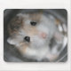 Tac que olha acima de um copo plástico, de seus olhos, de suiças e de nariz brilhando. PIC bonito do original em um mousemat para ver cada dia:)