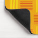 Este mouse pad tem uma design moderna do século médio que se parece com uma tecelagem com linhas vermelhas e amarelas em um campo de ouro.