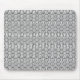 Este mouse pad tem um design de Art Deco de linhas pretas curvas em forma de triângulo em um campo de branco repetido na design.