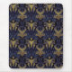 Este produto apresenta uma cor damasco intrincada e simétrica com os motivos florais dos ouros colocados sobre um marinho escuro e fundo preto. Os delicados elementos giratórios evocam uma sensação de luxo e refinamento, reminiscente dos designs barrocos ou Rococó. As matizes douradas oferecem um contraste rico contra os azuis profundos e modestos, criando uma estética elegante e sofisticada. O sombreamento sutil e a profundidade dão ao design uma sensação texturizada, quase tridimensional, melhorando seu encanto real e vintage.
