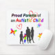 Linda família com uma criança autista em quebra-cabeça autistas, com corações, e borboletas ao seu redor. Design de Consciência Autismo Único para apoiar pais orgulhosos de uma criança autista.