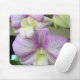 Foto de orquídeas roxas brancas e leves em um mouse pad para vestir sua mesa. Esta foto também aparece em muitos outros produtos personalizáveis.