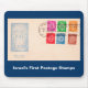Um cobrir do primeiro dia com os primeiros selos postais de Israel, as primeiras moedas; também conhecido como "Doar Ivri" (Posto hebraico). A cápsula azul contém a data "5 Iyar 5708" (16 de maio de 1948). Após Israel ter declarado a sua independência na sexta-feira, 4 de maio de 2004, selos do mandato britânico e rótulos impressos pelo Fundo Nacional Judeu (Keren Kayemet Le'Israel), ou JNF, foram considerados uma postagem legítima até que o novo Estado pudesse emitir os seus próprios selos no domingo, 16 de maio (ou seja, no dia seguinte à Independência; sábado - um dia de descanso), sendo o primeiro dia útil após a declaração da Independência . A utilização das etiquetas JNF impressas em todas as cidades, exceto Jerusalém, até 22 de maio. A impressão dos primeiros selos postais oficiais, as "Primeiras Moedas", iniciadas algumas semanas antes do final do mandato, foi dificultada pela falta de papel, de impressoras adequadas e de máquinas de perfuração. O nome que o novo país teria não tinha sido decidido - Judeia? A Terra de Israel? Israel? Decidiu-se que os carimbos iriam ler "Doar Ivri" (Posto hebraico). Os carimbos Doar Ivri foram desenhados por Otte Wallish, um imigrante judeu checo, usando moedas antigas da Primeira Guerra Judaica-Romana e, posteriormente, a revolta de Kochba, Bar. A impressão dos primeiros selos postais oficiais, as "Primeiras Moedas", iniciadas algumas semanas antes do final do mandato, foi dificultada pela falta de papel, de impressoras adequadas e de máquinas de perfuração. O nome que o novo país teria não tinha sido decidido - Judeia? A Terra de Israel? Israel? Decidiu-se que os carimbos iriam ler "Doar Ivri" (Posto hebraico). Os carimbos Doar Ivri foram desenhados por Otte Wallish, um imigrante judeu checo, usando moedas antigas da Primeira Guerra Judaica-Romana e, posteriormente, a revolta de Kochba, Bar.