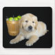 Um filhote do recuperador de ouros a preto com maçãs verdes.