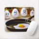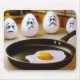 Ovos com expressões lacrimogêneas observando um ovo que nasce ao sol numa fritura negra