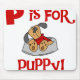 O texto vermelho lê "P é para o filhote de cachorro" nnestes t-shirt, canecas, sacolas, cartões, e mais bonitos do design do filhote de cachorro, excelente para qualquer um de toda a idade que amar cães!