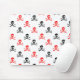 Crânios brancos, vermelhos e pretos e padrão ósseo cruzado.