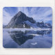 Mouse pad mostrado com uma impressão de foto de uma bela cena de reflexão montanhosa. Personalize este item ou comprar como está. Imagem do stock