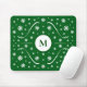 Um belo mouse pad em tons verdes esmeraldos com padrão de energia da flor branca, uma letra verde escura de monograma e ornamentos florais. Perfeito para decorar sua mesa no escritório ou para um trabalhador em casa!