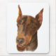 Arte Doberman Pinscher de cor ferrugem original desenhada com pasta giz em papel de aquarela pela proprietária da loja Zazzle, Deborah Miller.