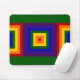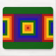 Mostre seu amor pela cor com arco-íris geométricos alternados em um mouse pad personalizado. Uma série de quadrados vermelhos, laranja, amarelo, verde, azul, índigo e violeta irradia do centro desta design festiva. Em ambos os lados do quadrado principal estão metades de 2 quadrados arco-íris com as cores sequenciadas em ordem inversa. Imagem de pixel criada digitalmente. Copyright © 2011 Claire E. Skinner. Todos os direitos reservados.