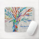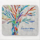 Pad do mouse instrutor da Árvore Rainbow Yoga. Este mouse decorativo apresenta um impressão de uma árvore colorida arco-íris em um fundo de cinza pálido. O design original foi feito em mosaico usando muitos pequenos fragmentos de vidro de cor clara. Você pode personalizar este mouse pad adicionando seu nome e ocupação. Mosaico original © Michele Davies.