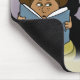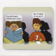 Um mouse pad com um desenho engraçado sobre estudantes escrevendo ensaios. Arte original de BD Cartoons.