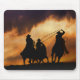 Três cowboys correndo atrás do gado no pôr do sol, isso certamente fará uma declaração! Uma maneira excelente de decorar o seu escritório ou dar como presente!