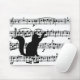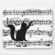 Silhueta de gato preto em partituras em fundo branco. A cor de fundo pode ser alterada.