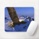 O mouse pad é mostrado com uma impressão de foto de uma águia selvagem. Personalize este item ou comprar como está. Foto do stock all-free-download.com freepik.com