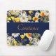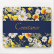 Camomila bonito e papoila o padrão floral em fundo azul marinho com banda de texto. Personalize este mousepad com nome ou outra mensagem especial.
