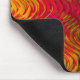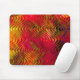 Padrões ondulados e abstrato em tons vívidos de vermelho, amarelo e rosa criam um efeito visual dinâmico e fluido. Linhas curvas formam um sentido de movimento, atraindo o olho através da composição.