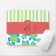 Mousepad Padrão De Flores, Listras Verdes, Monograma