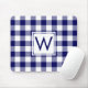 Mousepad Padrão de Gingham Azul e Branco do Marinho Monogra