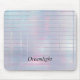 Um padrão digital com uma sutil grade iridescente sobre um fundo pastel macio, evocando uma estética futurista.
