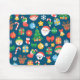 Padrão de Natal multicolorido e animado com papais noeis, renas, elfos, boneco de neve, urso polar, presentes, arcos vermelhos e verdes, decorações, canas doces, meias vermelhas, etc.