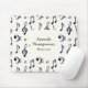 Um mouse pad com um design musical temido. Um padrão com clave trivial, clave de baixo e outros símbolos musicais.