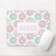 Mousepad com um padrão deliciosamente divertido. Ilustração de rosquinhas cor-de-rosa pastel e verdes com aspersão e gelo.