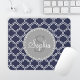 Um padrão chic, elegante, de tendências, azul marinho e branco de lattice marroquina com uma placa de nome de cinza para seu nome personalizado e letra inicial monograma.