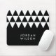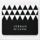 Mínimo de mouse preto apresentando um padrão moderno de triângulo branco que você pode personalizar com seu nome. Personalize-o substituindo o texto do marcador de posição. Para obter mais opções, como alterar a fonte e seu tamanho, clique no botão "Personalizar". *Observe que a Marca d'água do Zazzle que aparece na visualização de zoom NÃO aparecerá no produto impresso final. © Rosewood e Citrus