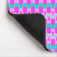 Um mouse com padrão geométrico colorido em magenta, azul, amarelo.