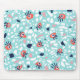 Divertido mousepad terrazzo com um padrão geométrico sem costura com olhos estranhos em algumas das pedras de mármore abstrato em corais e cores azuis.