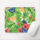 Padrão de aquarela com tucano, borboleta, hibisco e folhas tropicais. Eu pintei elementos para o padrão com aquarelas no papel, e então os digitalizei e fiz o padrão no Illustrator