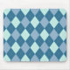 Este padrão vintage argyle azul apresenta um design atemporal que combina sofisticação clássica com um toque de charme retrô. O padrão mostra uma interação harmoniosa de formas de diamante ousadas em tons variados de azul, criando um efeito visualmente impressionante e dinâmico.