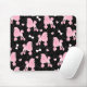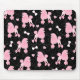 Padrão de poodles cor-de-rosa com Arcos e corações em um padrão de espiral delicado em um mouse preto suave em segundo plano.