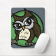 Mão de mouse vertical ilustrada com coruja. A cor de fundo pode ser personalizada.