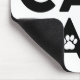 O texto preto "Pai de gato surdo" é empilhado em três linhas de texto em maiúsculas. O "a" em "Pai" tem um dentro de pata branca.