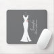 Mousepad personalizado feito com um fundo de cinza clássico. Uma ilustração gráfica de um elegante vestido branco pendurado num cabide. Design minimalista simples.